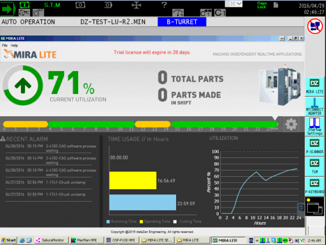 Built on scalable technology, MIRA LITE automatically collects and monitors Machine Operational Status, Alarms, Utilization, Parts Produced and Availability from the control at machine level.